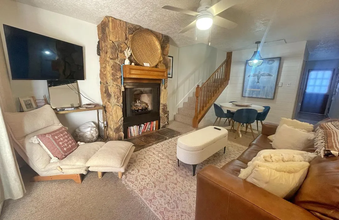 Con vistas a las montañas, la Valley Condo 108 - Skye Retreat - Creekside - Pet Friendly - Wifi - Hot Tub - Fireplace - Washer - Dryer - Playground ofrece instalaciones multimedia, como TV y televisión con múltiples canales. Las comodidades de los cuartos de baño incluyen secadores de pelo y toallas de baño.